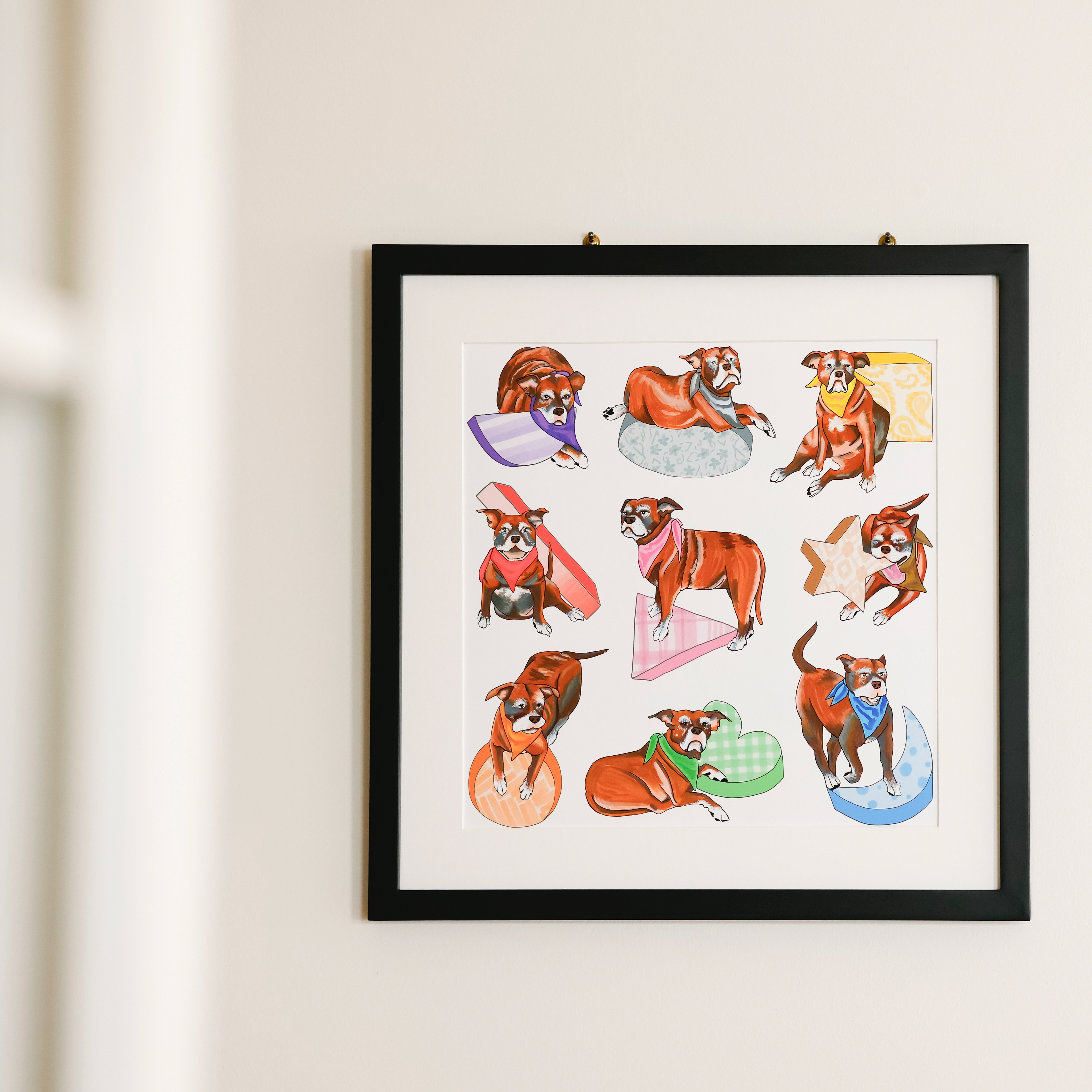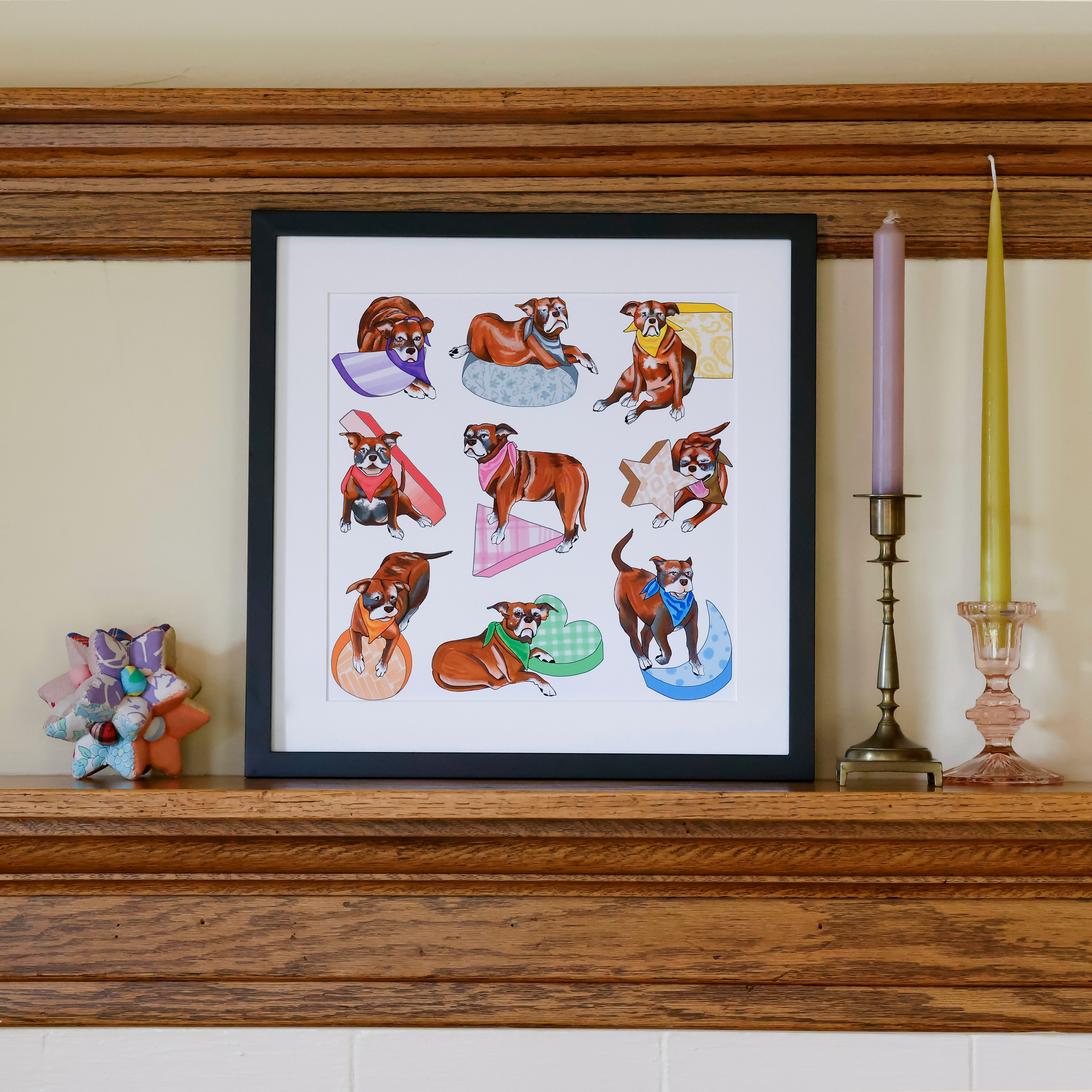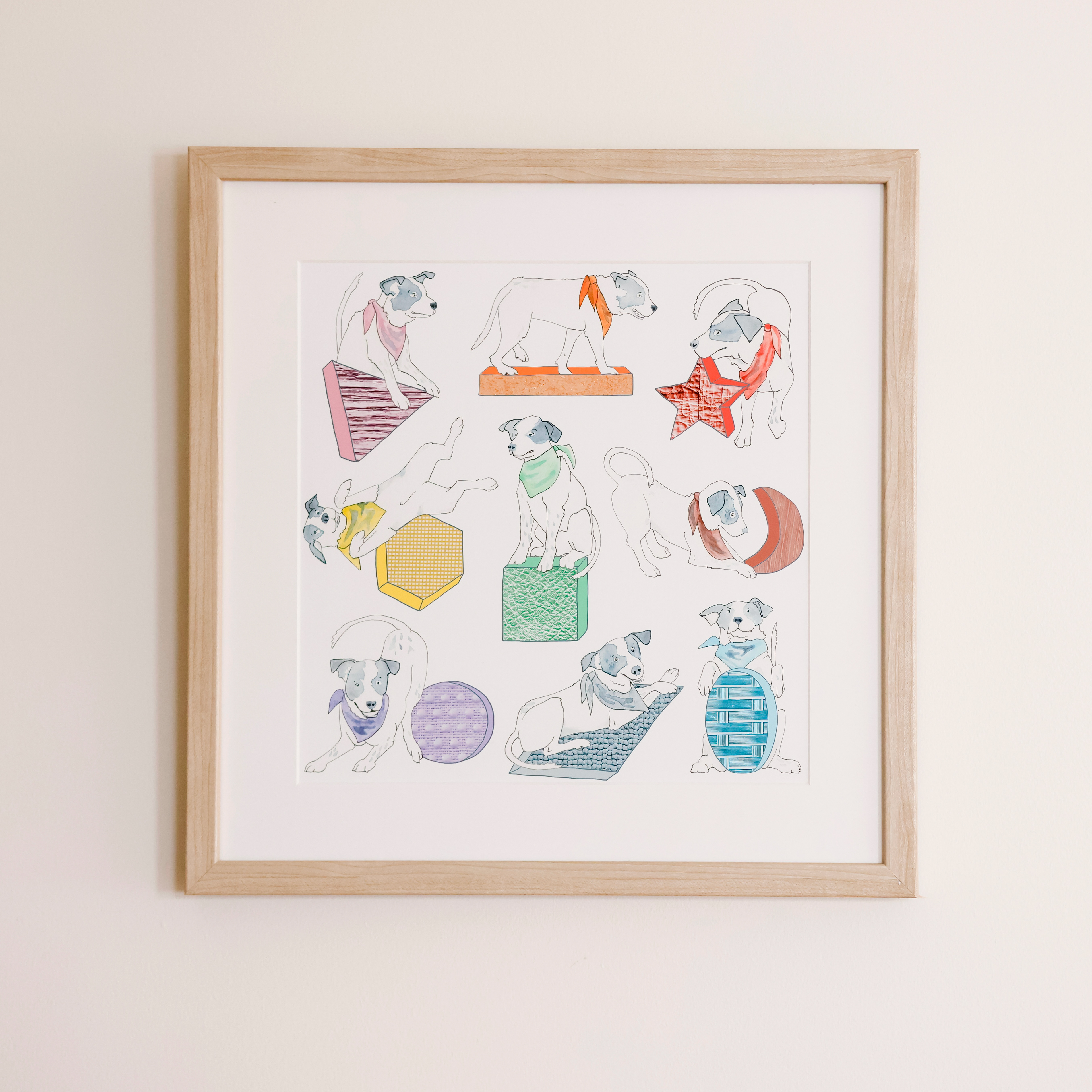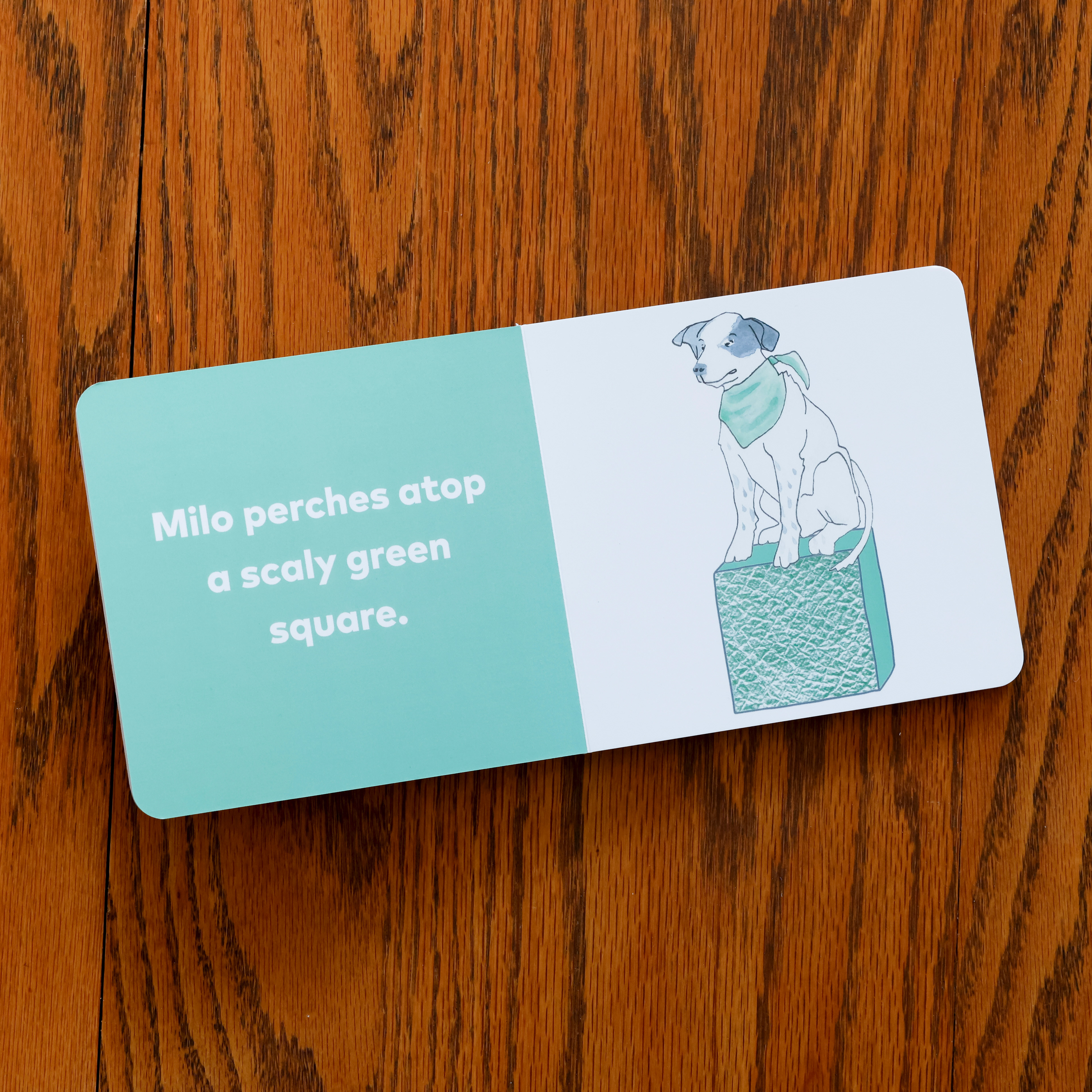 Calypso the Boxer Mutt introduces shapes in vibrant colors and classic patterns.