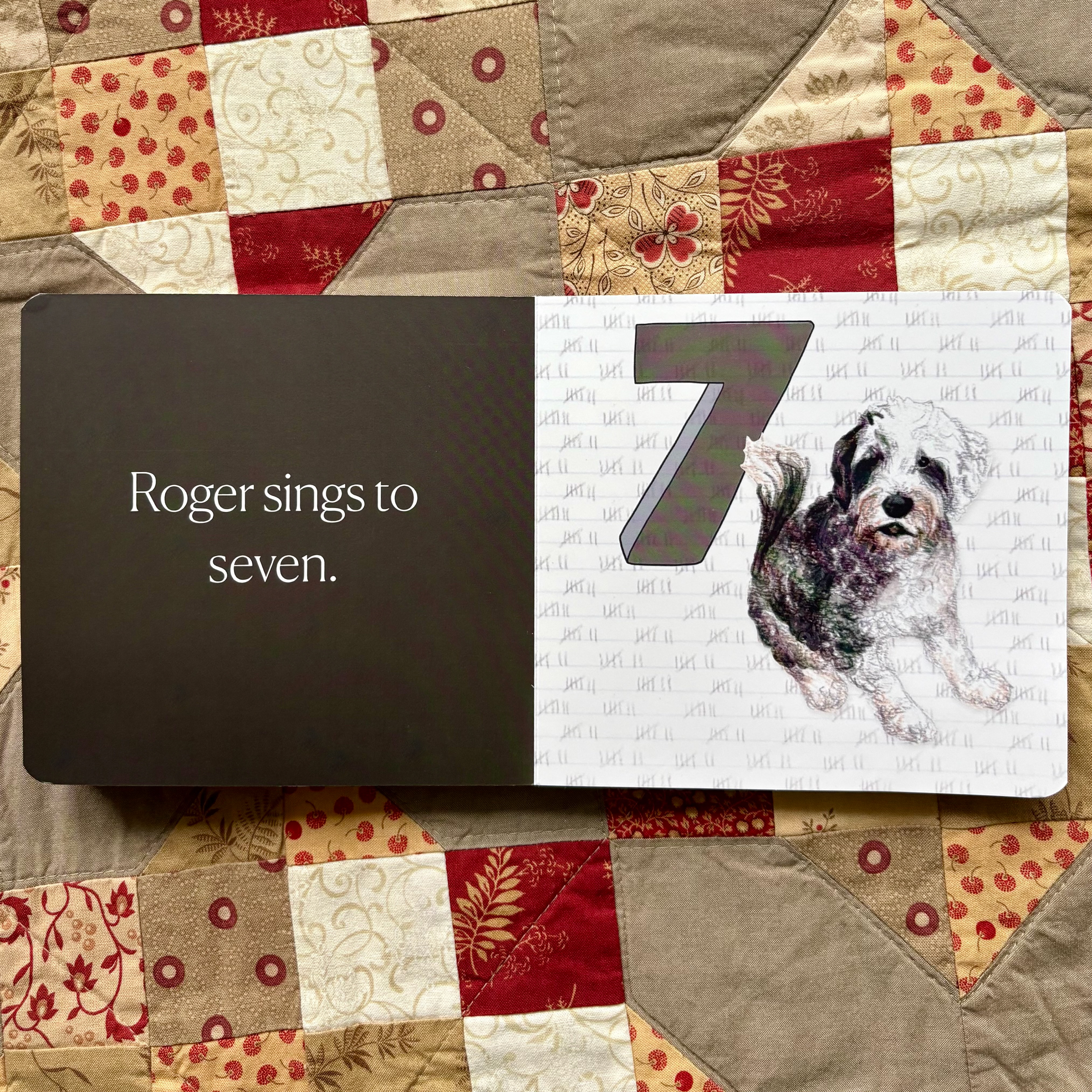 Roger the Sheepadoodle Dog practices counting from zero to nine.